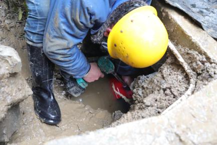 因漏水量大,工作人員來不及更換雨鞋就緊急關(guān)閥止水,為了讓搶修速度更快,師傅們直接跳到1米多深的水泥坑里用鍬、鏟等各類工具開挖漏點;拆卸、安裝、焊接,一刻也不停歇;抽干積水,清理路面。大家分工協(xié)作,經(jīng)過四個小時的奮力搶修,終于維修完畢,開閘通水。此時,搶修人員的衣服、鞋子早已被水浸透,寒風(fēng)中,大家凍得瑟瑟發(fā)抖、雙手麻木通紅,但他們每個人的內(nèi)心都充滿了欣慰,因為他們在這個飄雪團(tuán)圓的小年里,又一次用實際行動給居民群眾送去了“放心水”。